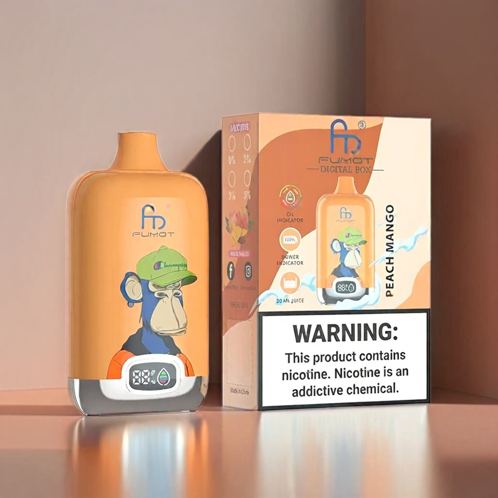 Fumot Tornado Digital Box Angro România – 12000 Pufuri Peach Mango Cu Baterie ReîncĂrcabilĂ 550MAH și încĂrcare Type -C