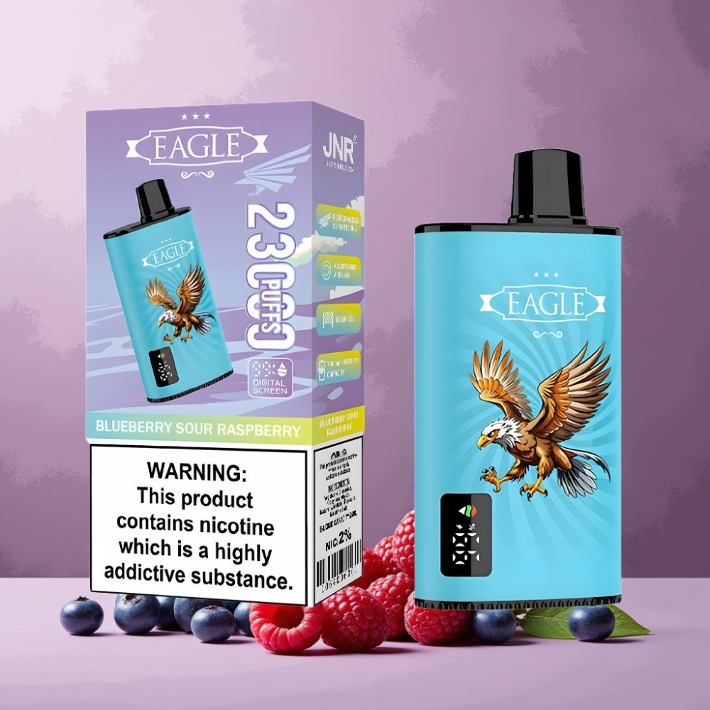 JNR EAGLE Smart 23000 Pufuri Disposable Vape Afine Acidulate Zmeură Angrosisti Romania Ecran Digital Bobină Mesh 1.0ohm Baterie 750mAh Port Type-C 25ml Lichid Nicotină 2%