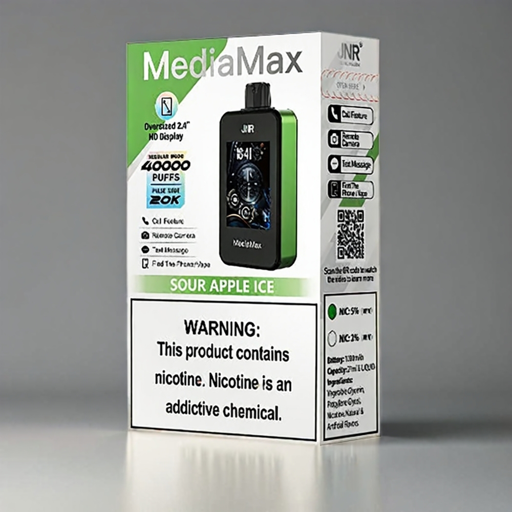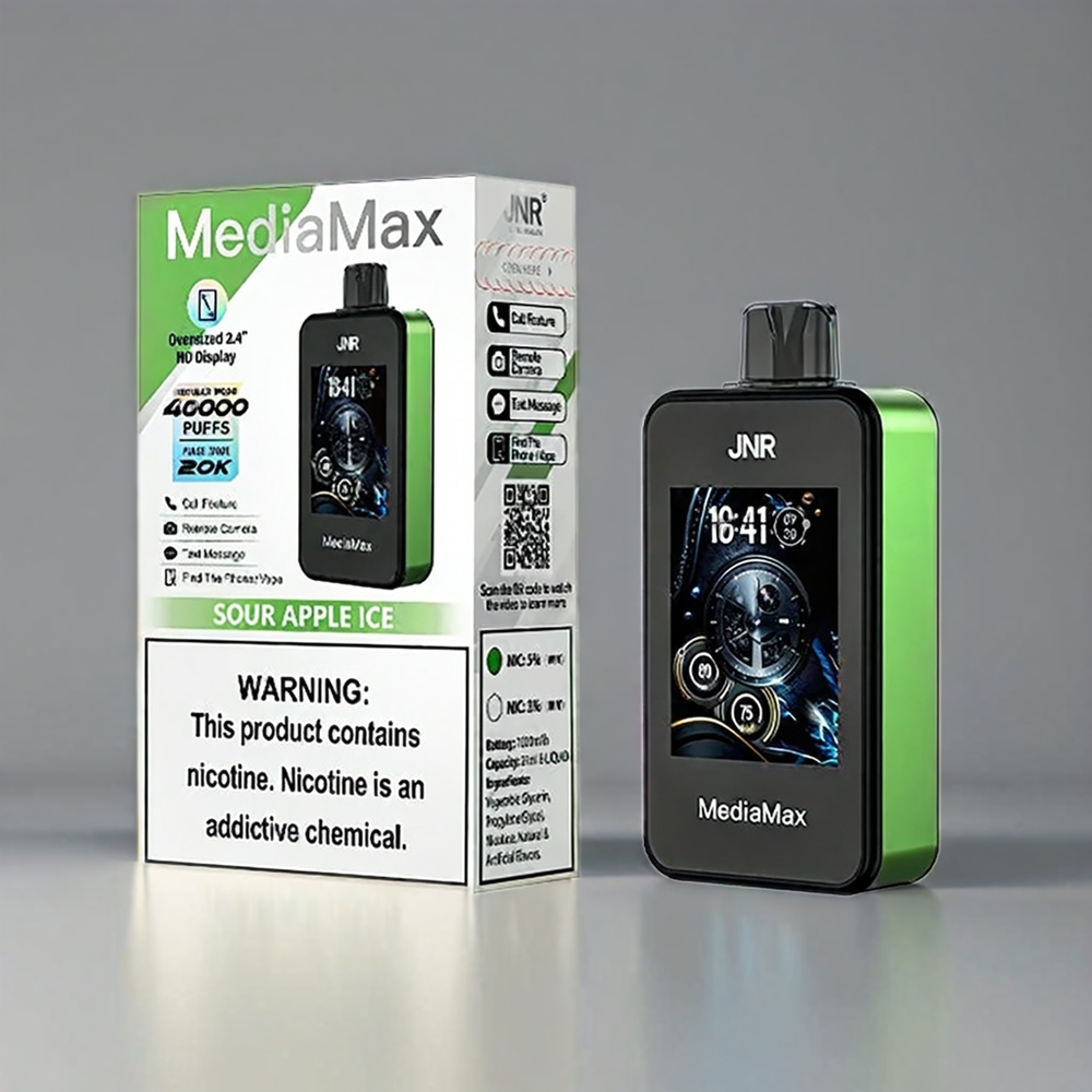 Detalii Tehnice Excepționale:JNR MediaMax 40000 Puffs OFERĂ 40000 DE FUMURI ÎN Modul regulat și 20000 în Mod Pulse. Este Alimentarat de O Baterie de 1000MAH, ÎNCĂRCABILĂ RAPID PRIN USB TIP-C. CAPACITATEA REZERVORUI DE LICHID ESTE DE 21ML, IAR CONNOGINUTUL DE NICOTINĂ DE 5% ASIGURĂ O LOVITURĂ PURNICĂ. DOTAT CU COIL DUA DUALĂ șI UN ECRAN HD DE 2,4 “, DISPOZITIVUL OFERĂCOL TOTAL șI O EXPIRARE LINIA.