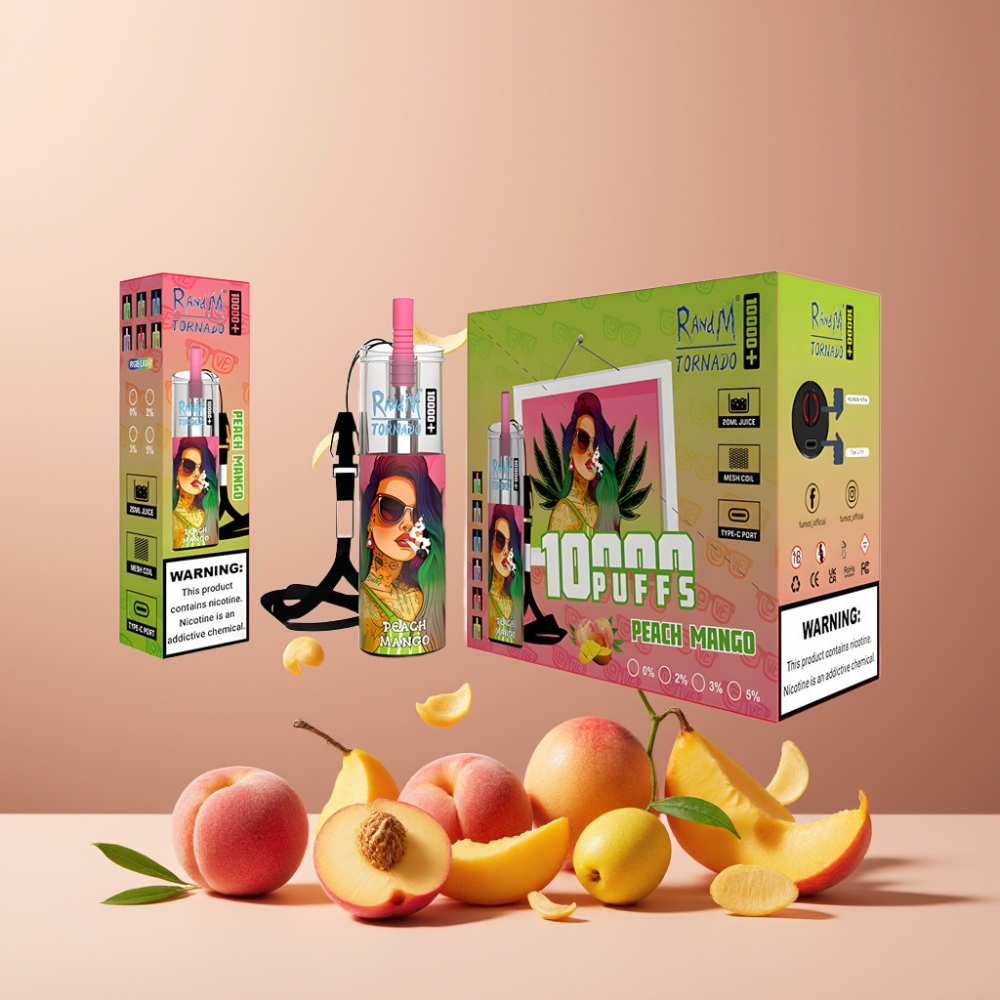 RandM Fumot Original Tornado 10000 Plus Angrosisti Romania Piersică Mango Mesh Coil RGB Lights Type-C Port